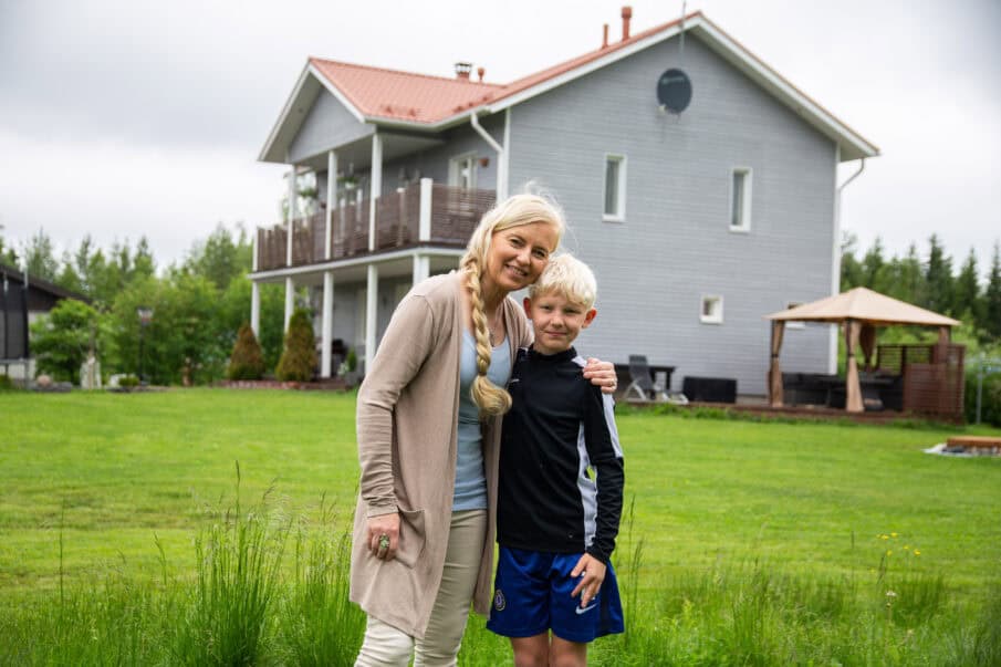 Marja Hakala ja 12-vuotias Samuel ovat viihtyneet hyvin Keminmaassa. ”Arvostan alueen rauhallisuutta, turvallisuutta ja luonnon läheisyyttä. Myös harrastuksia löytyy lapsille.”