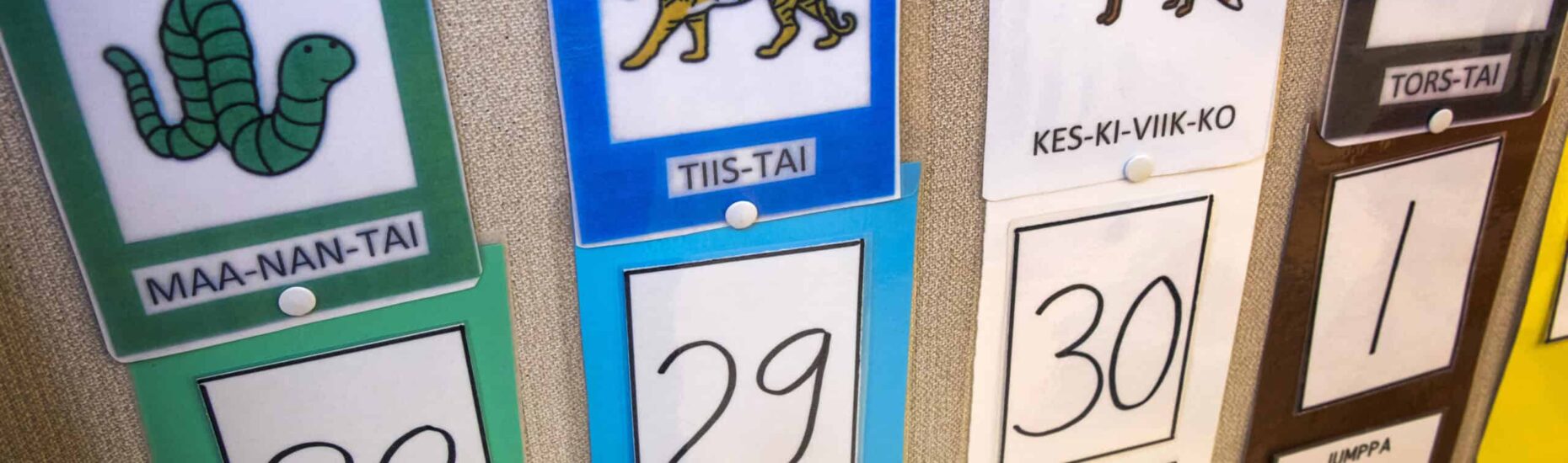 Pölhön päiväkodin esiopetuksen luokan ovelle johdattaa värikäs seinä. KUVA: NINA SUSI